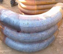 熱煨彎管也叫做中頻彎管,其生產(chǎn)工藝是直管下料厚通過彎管推制機在鋼管待彎部分套上感應(yīng)圈,用機械轉(zhuǎn)臂卡住管頭,在感應(yīng)圈中通入中頻電流加熱鋼管,當(dāng)鋼管溫度升高到塑性狀態(tài)時, 在鋼管后端用機械推力推進,進行彎制,彎制出的鋼管部分用冷卻劑冷卻, 這樣邊加熱、邊推進、邊彎制、邊冷卻, 不斷將彎管彎制出來。